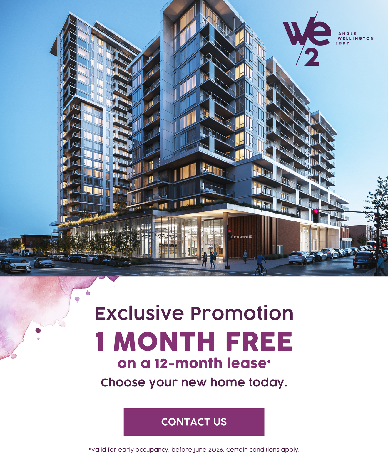Following the success of We 2, We 3 rises at the corner of Wellington and Saint-Rédempteur streets (Hull) with a 29-story tower, adding more common spaces, including a pool and terrace on the top floor with panoramic views and amazing sunsets.